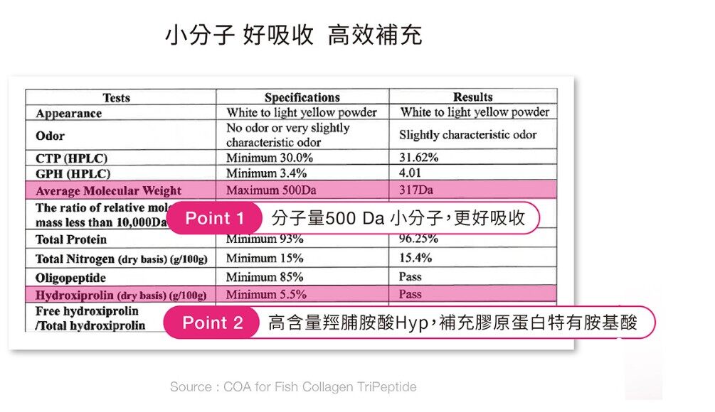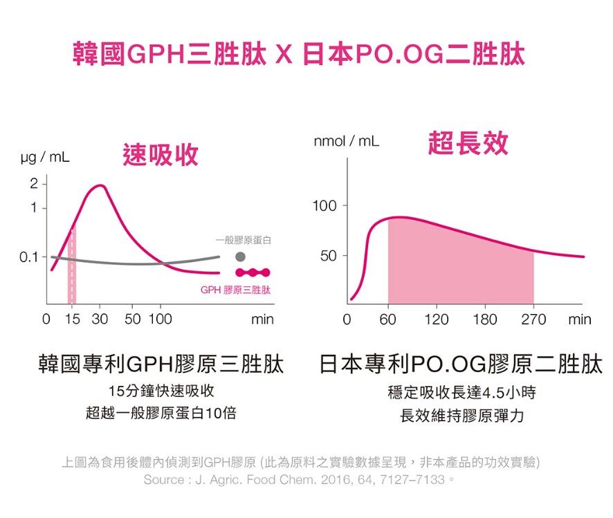 嚴選韓日專利雙膠原胜肽,500Da小分子好吸收,搭配桃子神經醯胺、玻尿酸、維生素C等五大美妍成分,全面維持肌膚彈性、水潤與光澤。